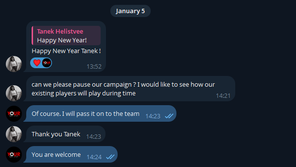 Regarding the unpaid commission: as clearly stated in our Terms and Conditions, all traffic is subject to mandatory compliance and anti-fraud verification prior to payment approval. Any preliminary confirmation or discussion of payment is conditional upon successful completion of these checks. At the time of the initial communication, the anti-fraud review had not yet been finalized.