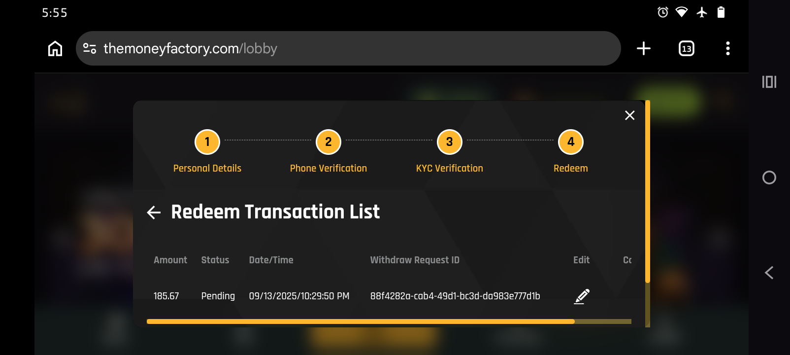 The Money Factory Casino - Redemption pending since September 2025