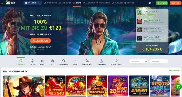Wenn Sie sich im 20bet Casino registrieren, können Sie einen 100% Willkommensbonus in Anspruch nehmen. Das Casino hat eine breite Auswahl an Spielen und eine Vielzahl von Zahlungsmöglichkeiten. Ein weiteres Vorzugsmerkmal ist der 24/7 Kundensupport, der jederzeit für Anfragen zur Verfügung steht.
