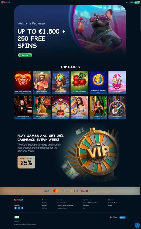 Das Baxterbet Casino ist eine Online-Glücksspielplattform mit einer umfangreichen Auswahl an Spielen von bekannten Anbietern. Dank der Lizenz aus Curaçao spricht das Online Casino eine breite internationale Kundschaft an.