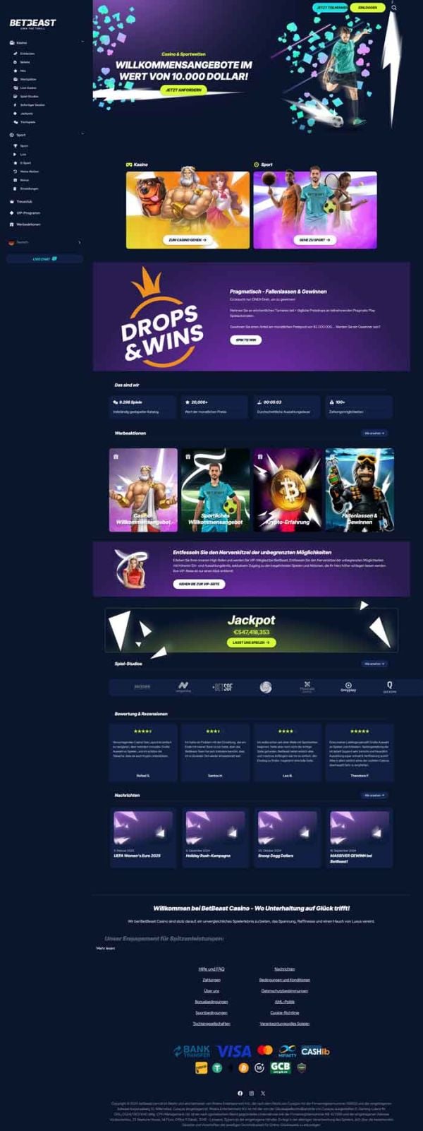 Das BetBeast Casino ist ein Online Casino, das eine breite Palette an Spielen und Zahlungsmethoden anbietet. Die Seite ist auf mehreren Sprachen verfügbar, und Sie können jedes Gerät zum Spielen verwenden. Sie können Ihre Webbrowser nutzen oder auf die neuesten Smartphones und Tablets für Spiele unterwegs umschalten.