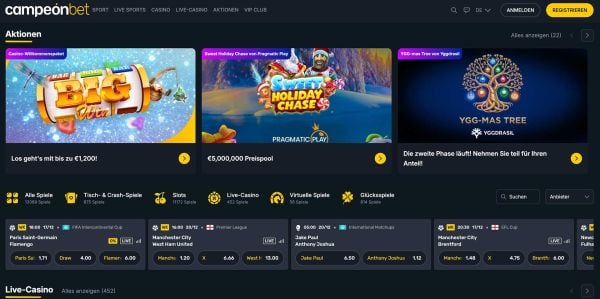 Insgesamt bietet Campeonbet Casino ein rundes Erlebnis, bei dem Spielspaß und Auswahl im Vordergrund stehen.