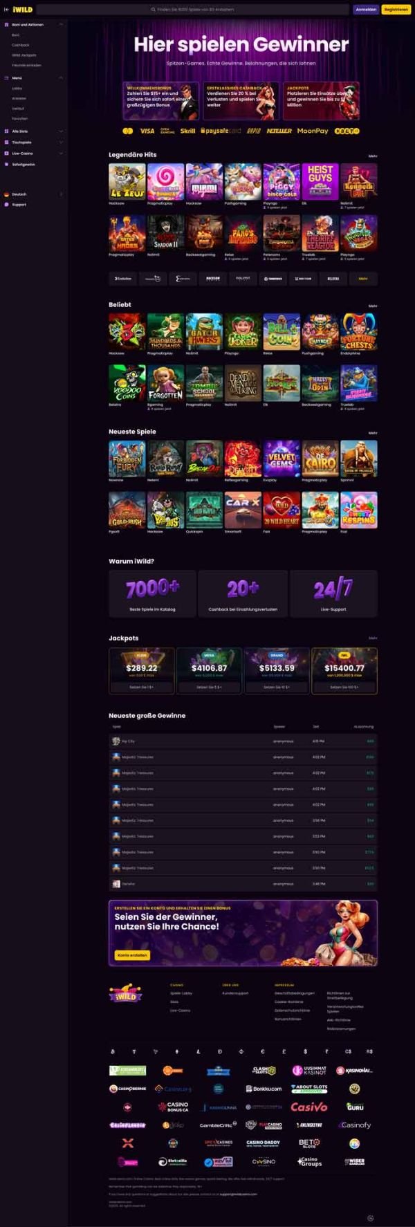 Meine allgemeine Erfahrung mit iWild Casino war sehr angenehm. Die Website ist gut gestaltet, mit einem klaren und intuitiven Layout, das die Navigation einfach und unkompliziert macht. Es gibt eine große Auswahl an Spielen, von Slots bis hin zu Tischspielen, die auf verschiedene Spielerpräferenzen zugeschnitten sind.