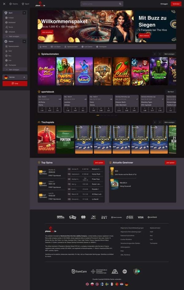 Wenn Sie auf der Suche nach einem zuverlässigen Online Casino sind, ist Placebet.io eine gute Wahl.