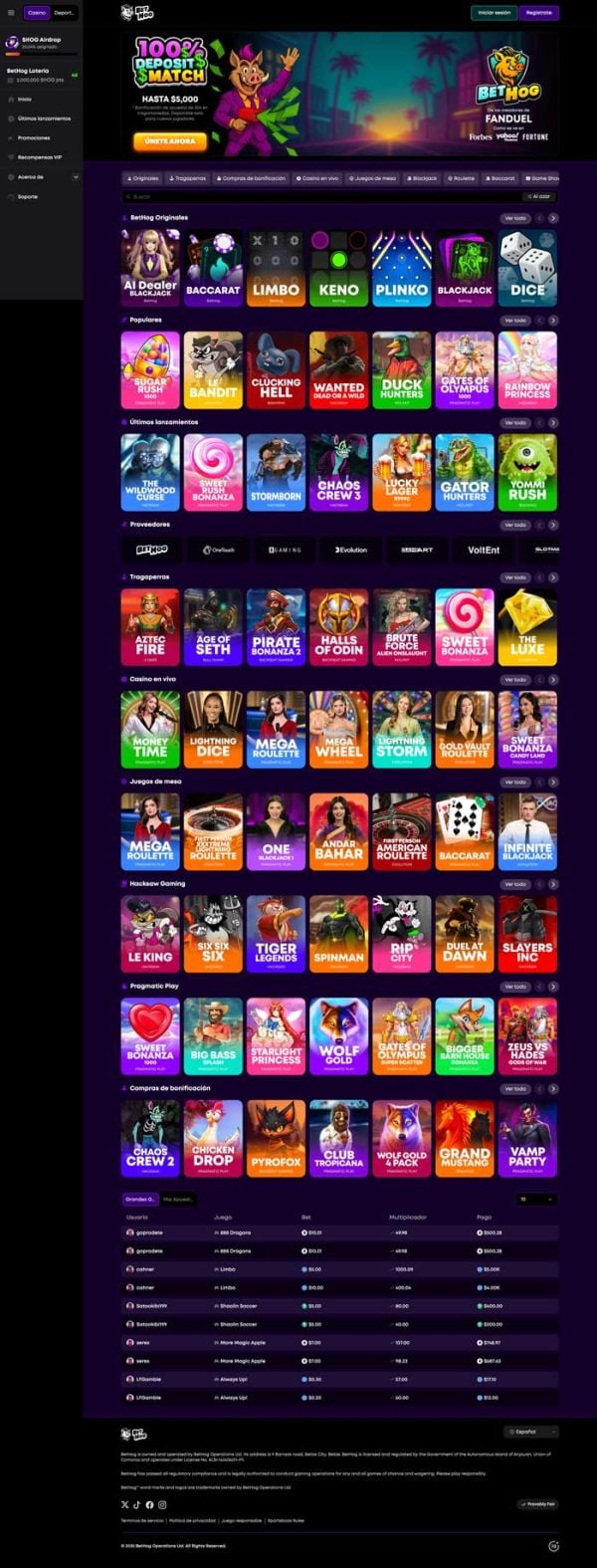 BetHog proporciona una plataforma de casino online para jugadores de todo el mundo. Tiene una versión en español que puede ser muy conveniente para jugadores de casinos mexicanos que están acostumbrados a jugar en su idioma.