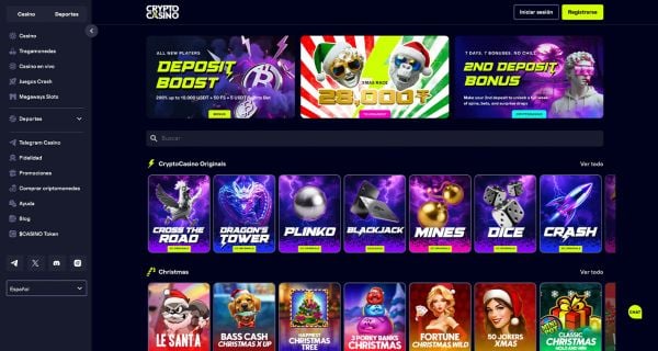 CryptoCasino ofrece un excelente entorno para disfrutar de juegos de casino y tragamonedas compatibles con criptomonedas. Puedes comprar criptomonedas directamente en el sitio siguiendo instrucciones en línea fáciles y utilizando métodos de pago seguros. Además, puedes convertirte en un miembro VIP y disfrutar de bonos activos y un chat en vivo disponible las 24 horas, los 7 días de la semana. Sin embargo, el gran problema aquí es que el casino no está disponible en español, lo que podría causar problemas para algunos usuarios.