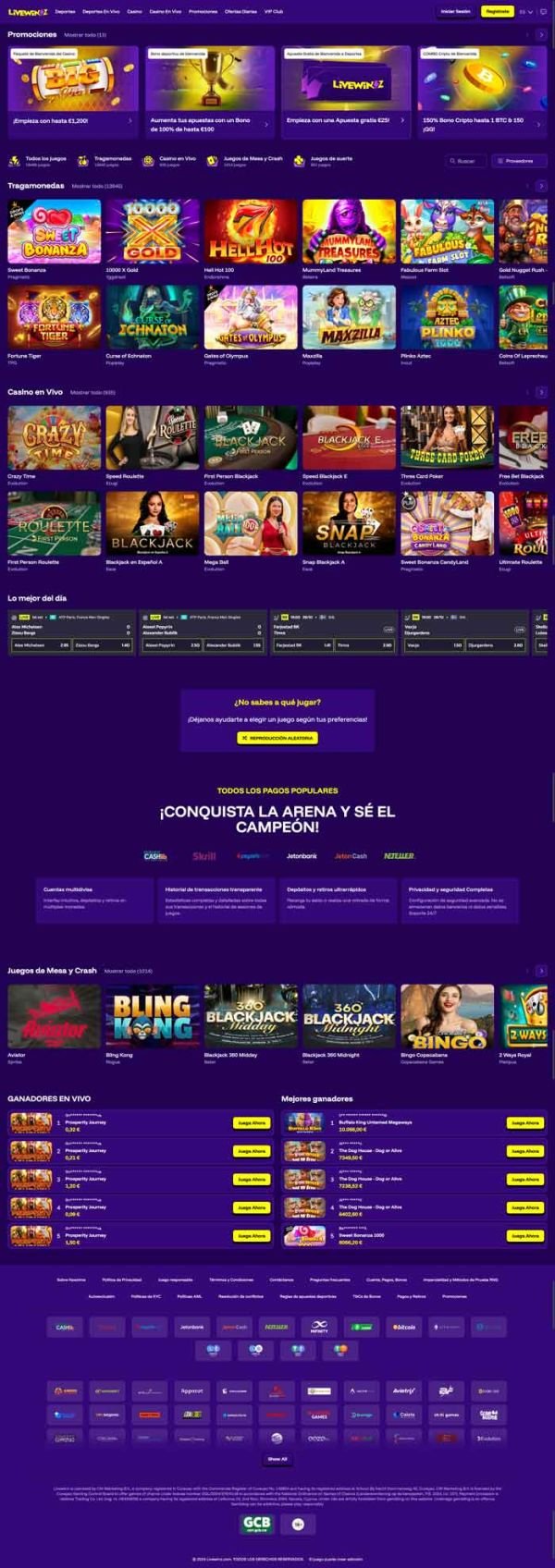 Livewinz Casino alberga más de 17,000 juegos de casino, y estamos seguros de que encontrarás opciones para disfrutar. Puedes elegir entre más de 14,000 tragamonedas online de proveedores reconocidos, además de los juegos de mesa más recientes y una amplia selección de juegos de casino en vivo.