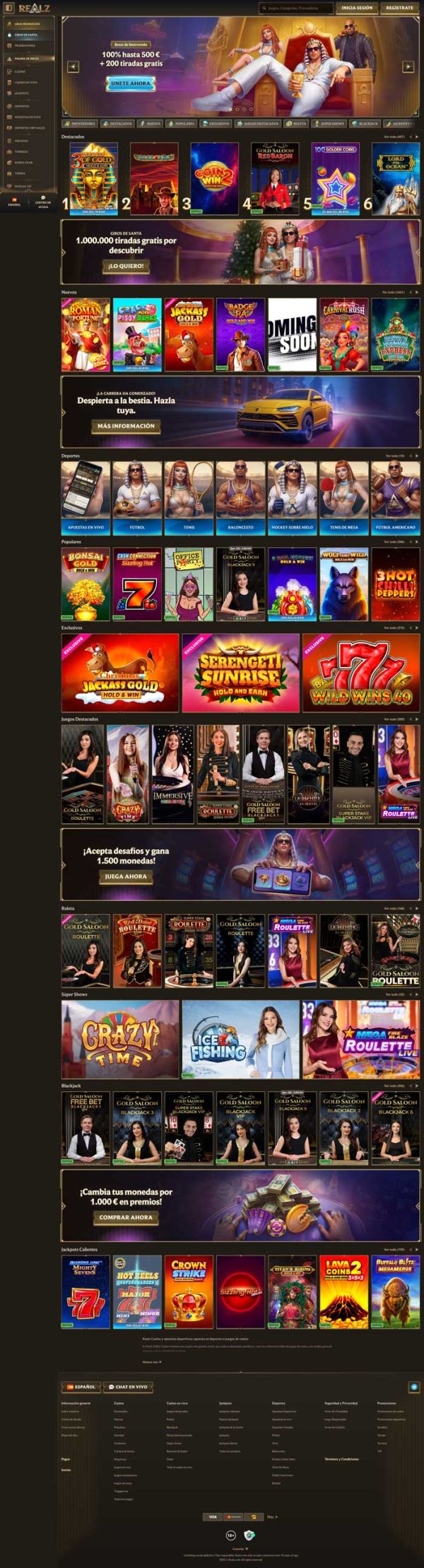 Con una licencia de la autoridad regulatoria de la nación de Tobique, Realz Casino apareció en la arena de los casinos online en 2025. Su sitio web tiene muchos idiomas, incluido el español, y una variedad de categorías que facilitan la orientación.