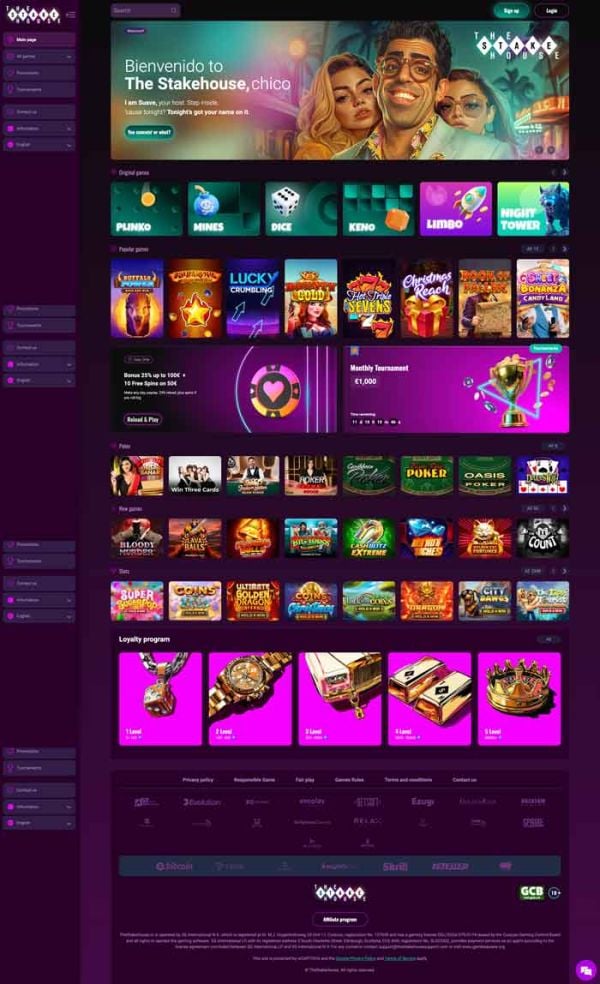 TheStakeHouse Casino ofrece una plataforma segura y confiable donde puedes disfrutar de una amplia gama de juegos de casino y tragamonedas. Todo está disponible de forma instantánea desde tu navegador web, o puedes cambiar fácilmente a la versión de casino móvil. Hemos revisado el sitio en detalle y te recomendamos consultar también las reseñas de jugadores reales antes de registrarte.