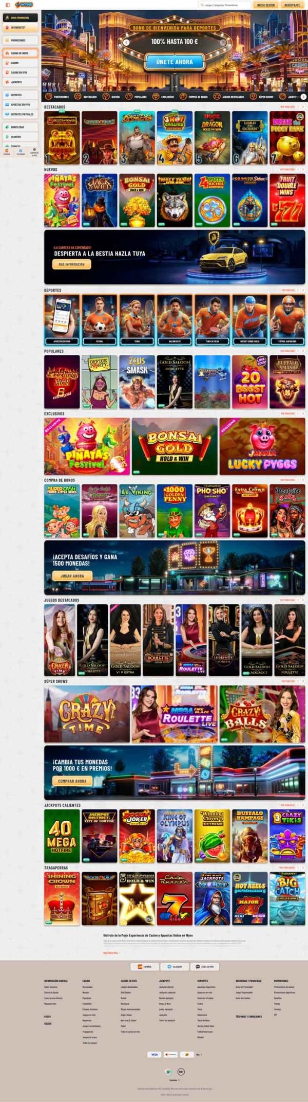 Wyns Casino es un casino online que ofrece una amplia gama de juegos, proveedores y deportes. Nuestras reseñas de casino no cubren la parte de apuestas deportivas, pero puedes consultar nuestra sección de apuestas para leer reseñas sobre deportes.