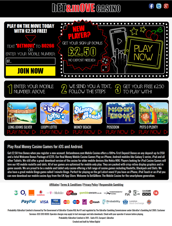 Bet&Move Mobile Casino currently only accepts players who reside within the United Kingdom.