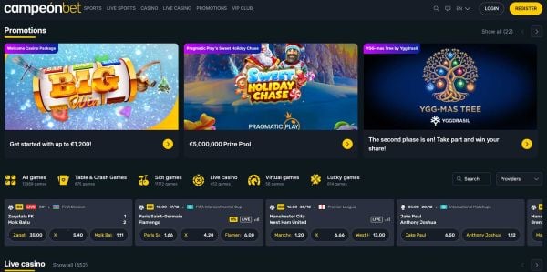 With over 10,000 games, Campeonbet is truly a champion in offering online casino games. Players can find any game they can think of here. And they can do so quickly, as the website navigation is smooth and intuitive.