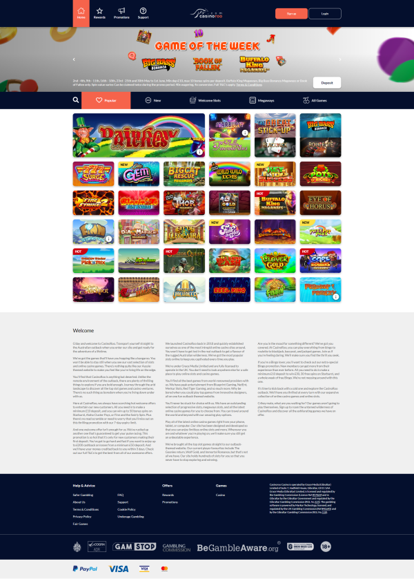 CasinoRoo is an Australian outback themed online casino home to a vast selection of games that include video slots and table games. Players can immerse themselves in a range of different software providers, including well-known names such as NetEnt, Microgaming, Pragmatic Play, Red Tiger Gaming and more.