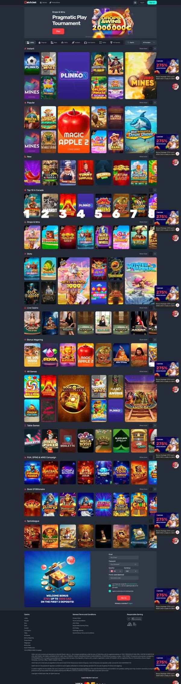 Catch.bet Casino is an online casino site catering for selected markets. They offer a collection of top games from well-known providers, which are all available once you enter the gaming lobby. You’ll learn more about these games in our casino reviews.