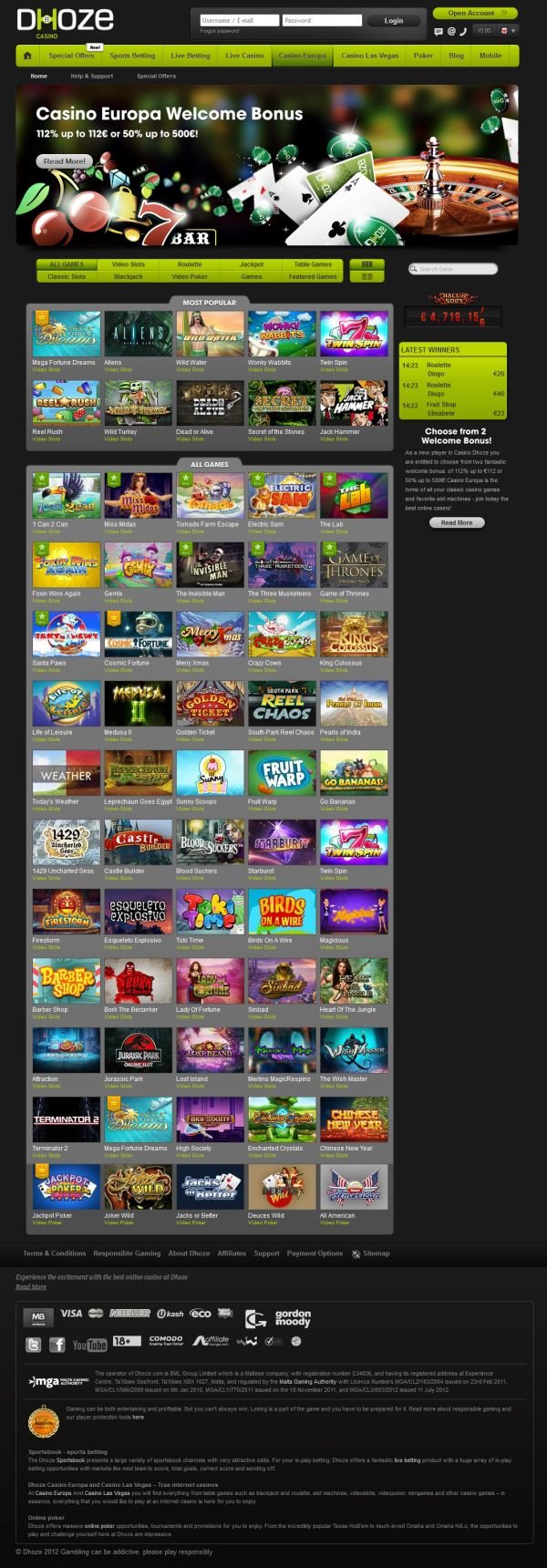 I liked the casino their welcome bonus, specially that they have Malta license and read somewhere that they are connected with Betsson casino or running under same license, so knowing Betsson is great casino, I will say Dhoze casino its safe to play. I opened an account there for nothing. That was it, I didn't deposit there, just because I couldn't get the bonus, well always read the Terms, that way you wont bother for nothing.