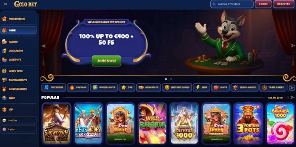 Golobet Casino delivers a colourful, animated, and inviting interface that makes navigation enjoyable. The use of themed characters and clear categorisation of games enhances the overall user experience, while the website is visually appealing across both desktop and mobile platforms.