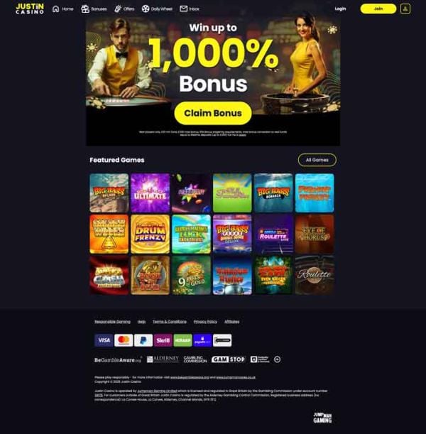 Justin Casino is a modern online casino home to well-known providers and games. The casino is home to the latest slots, table games, live casino games, bingo and more. You can enjoy frequent bonuses, daily wheel rewards and a variety of trusted payment methods, including debit cards and web wallets.