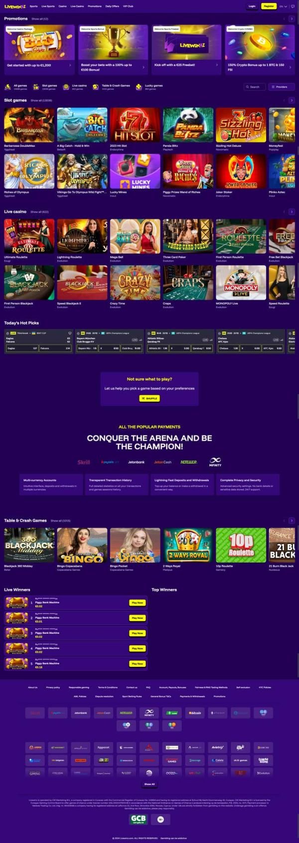 Livewinz is home to more than 17,000 casino games. You can choose from more than 14,000 online slots from well-known providers, including Megaways, progressive jackpots, bonus buys and more.