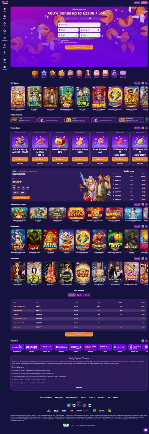 You’ll enjoy thousands of top games at Lolly Spins Casino. Their player-friendly platform provides access to the latest online slots, jackpots, table games, and live casino games.