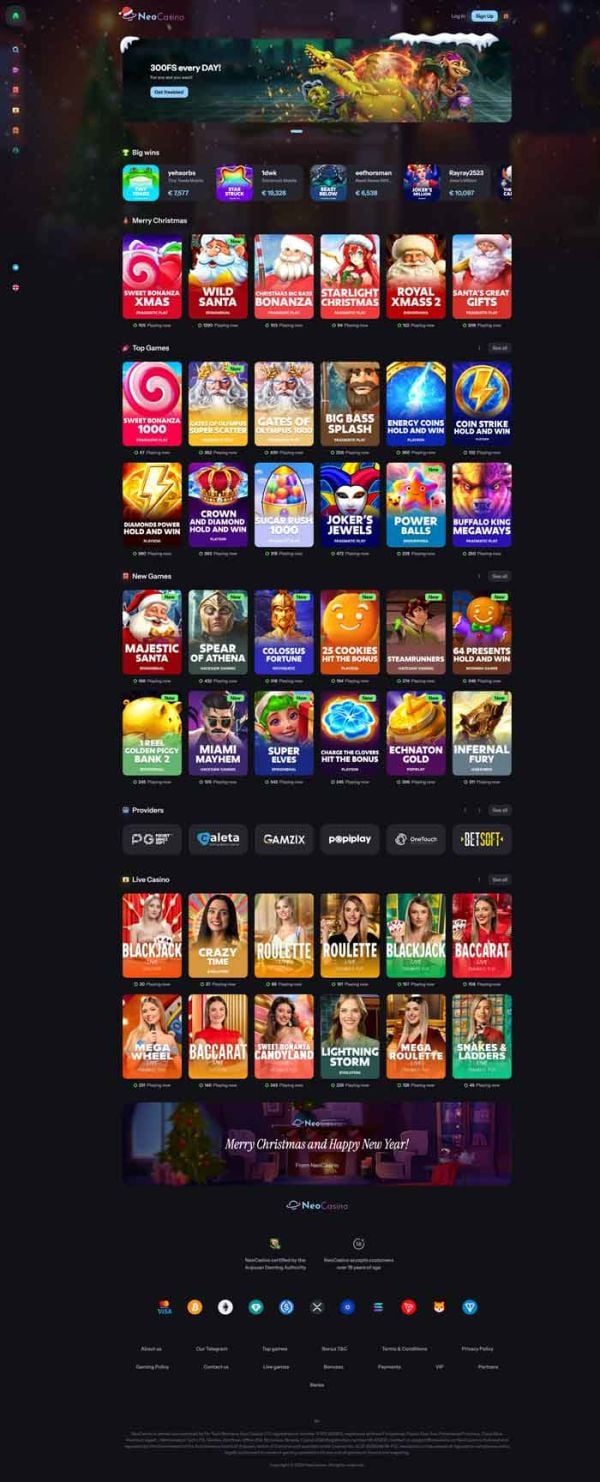 NeoCasino stepped onto the online casino scene in 2025, after acquiring a licence from the Anjouan Gaming Board. With a simple layout and straightforward focus on slots, NeoCasino looks like the next hot spot for players who love to spin the reels. Although the site does feature a live casino section, it seems rather small compared to the slots selection. Serving a global audience through the said licensing, the site is available in over 15 different languages.