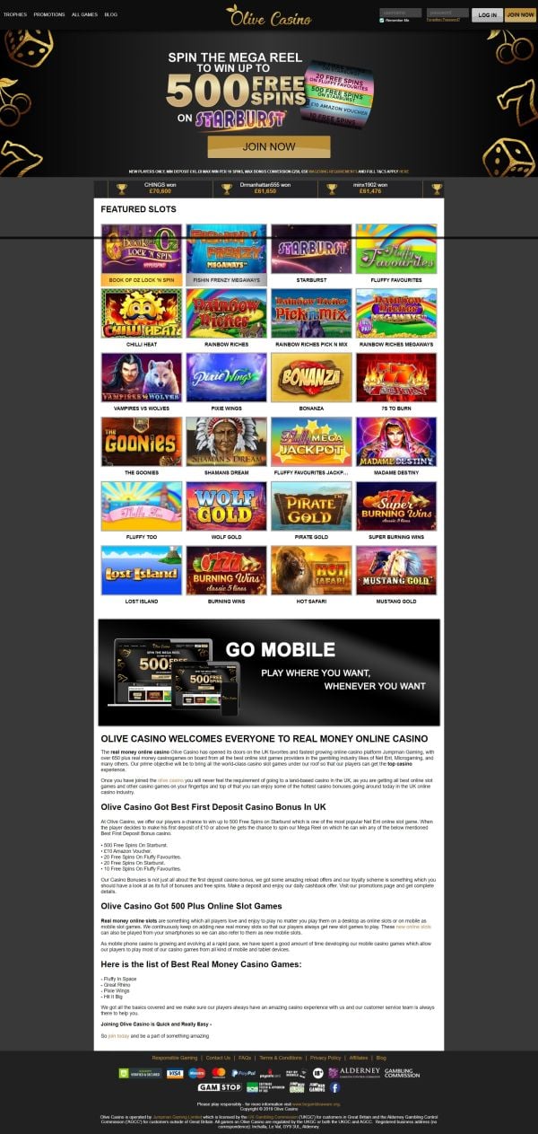 Olive Casino is an online casino operated by Jumpman Gaming Limited and home to several of the best software providers like NetEnt, Microgaming, Big Time Gaming, Eyecon and many others. Players can access the casino straight through a web browser or use their mobile casino and bath platforms are primarily available in English. Olive Casino is licensed and regulated by the UK Gambling Commission and the Alderney Gambing Control Commission.
