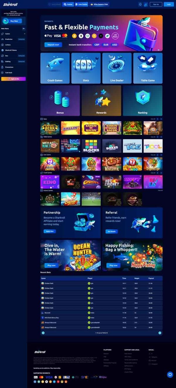 The casino is home to thousands of games to keep you busy for hours. As well as Sharkroll Originals, you’ll have access to the latest online slot collection from popular providers. The casino has the latest arrivals, so you can try games as they are released, as well as progressive jackpots and more.