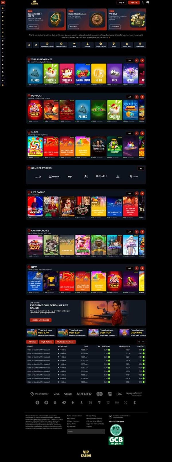 If you’re feeling special, you might join VipCasino, where you can access the latest casino games from providers all over the world. The new modern website is welcoming and easy to navigate, and everything runs smoothly.