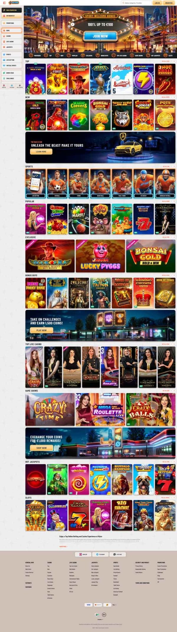 Wyns Casino is an online casino offering a wide range of games, providers, and sports. Our casino reviews don't cover sports, but you can see our betting section for sports reviews.