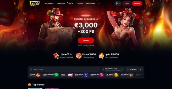 Players can enjoy generous promotions, including a welcome bonus, a VIP program, a wheel of fortune and weekly cashback. Yep Casino supports 10 languages, multiple currencies, and cryptocurrencies, making deposits and gameplay flexible.