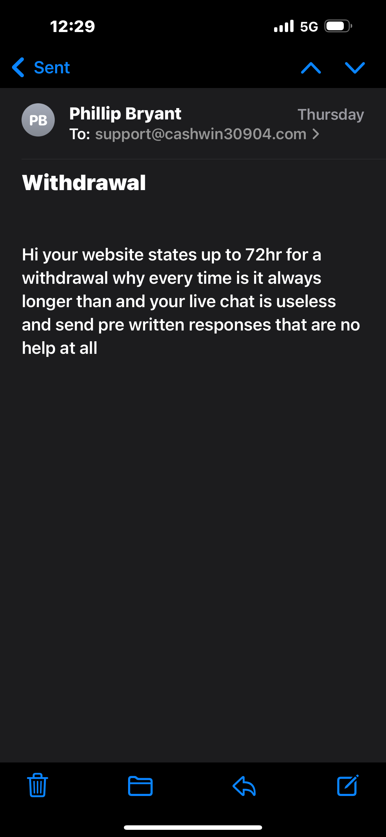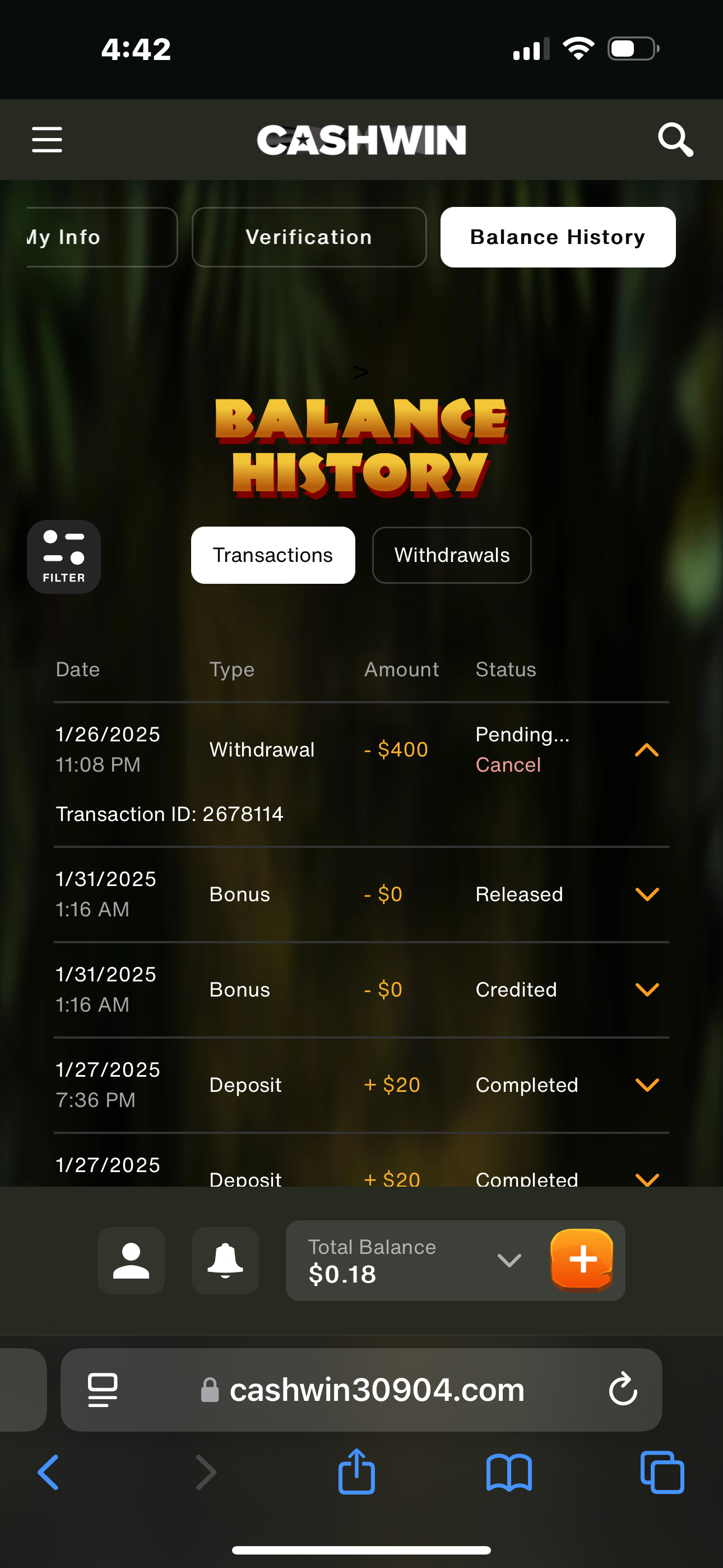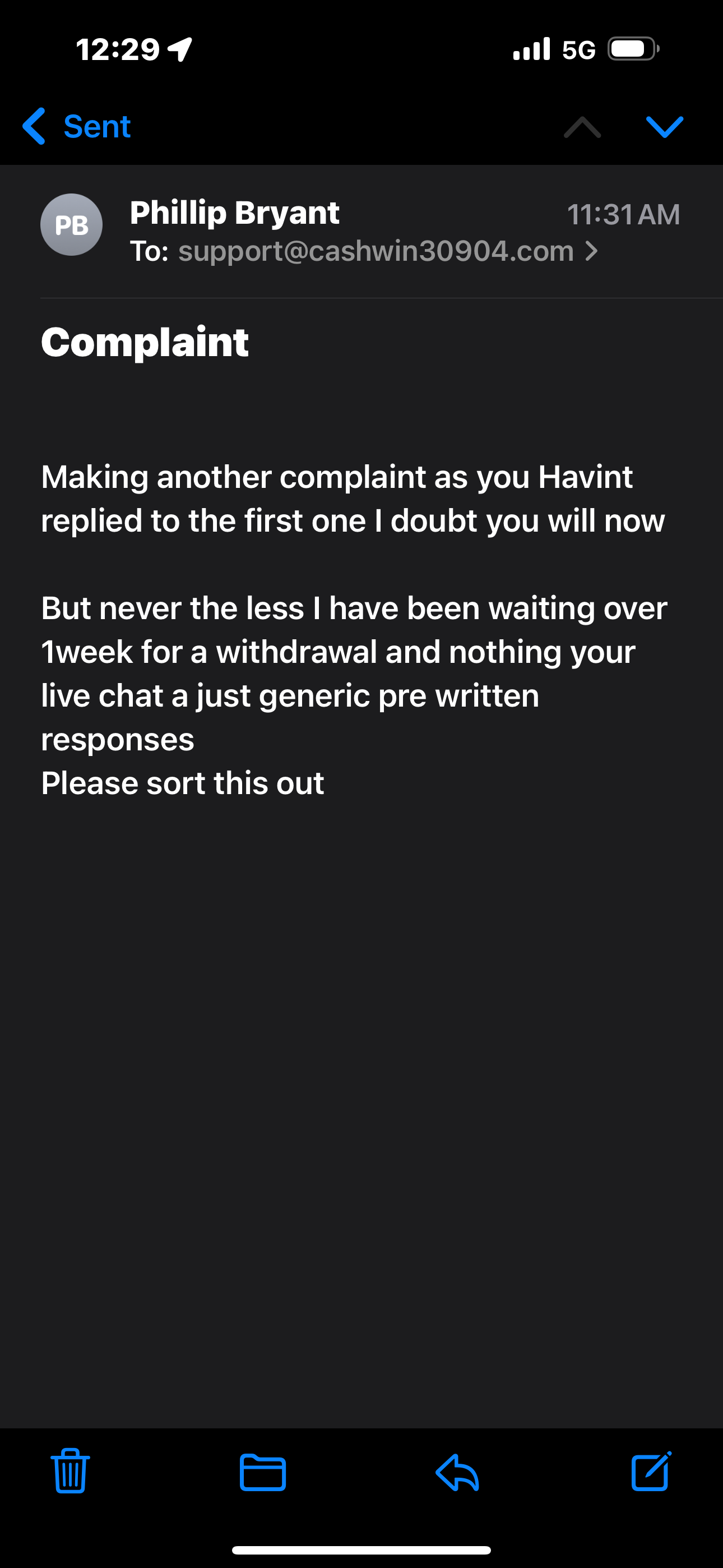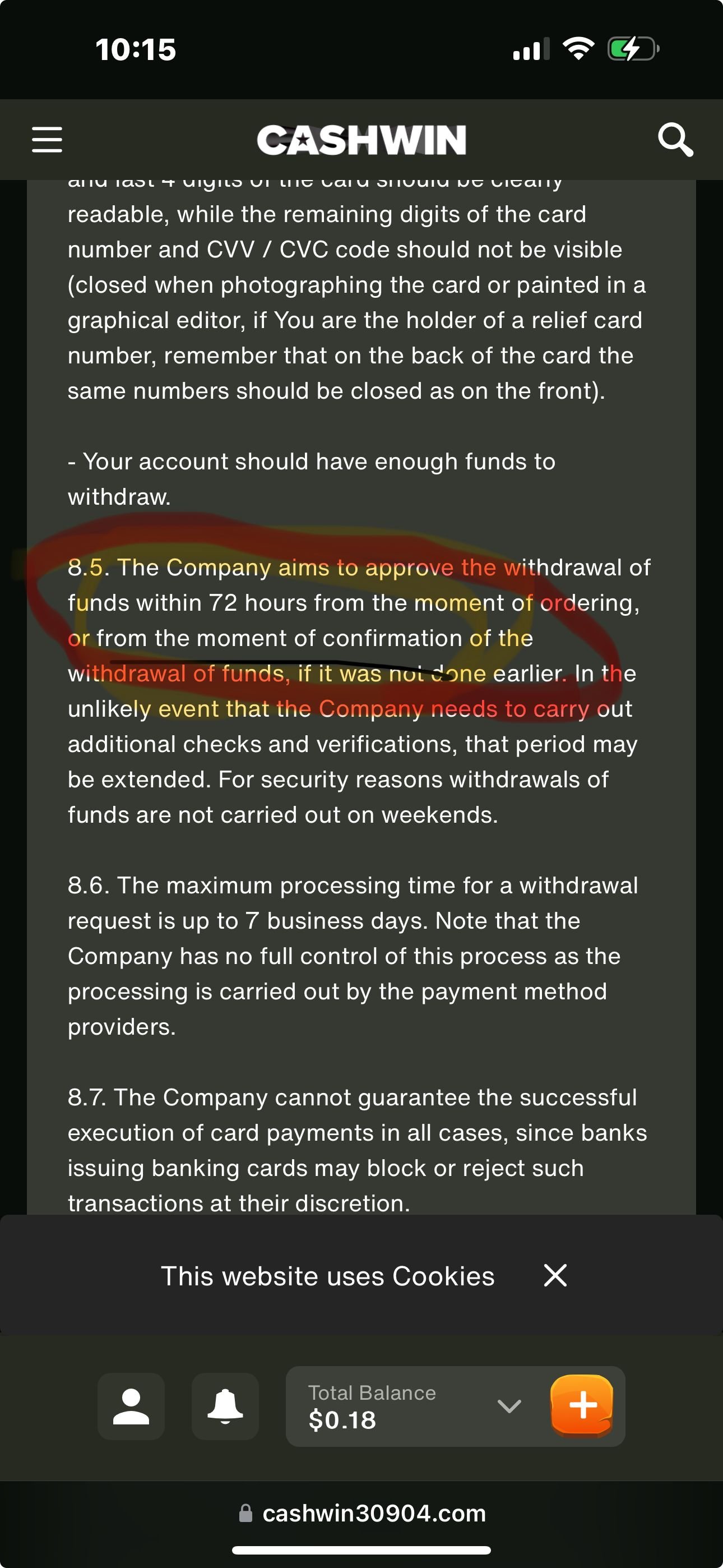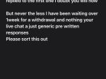 Hello on the 26/jan/25 I submitted a request for a withdrawal and their terms and conditions stated would be processed within 3 days and am now coming up to 7days. I have tried their live chat multiple times and get the same pre written responses (have attached a transcript of the most recent chats) I have tried their complaint email twice and have no reply have attached those as well have also attached a screenshot of the balance history that shows the date and time I tried to withdraw.