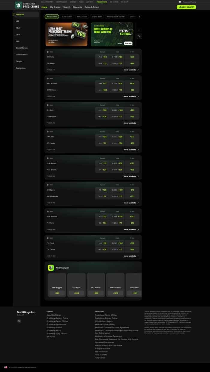 DraftKings Predictions offers many markets and event types, which may vary by state. In the case of sports markets, you can’t make trades on them from states with legal sports betting.
