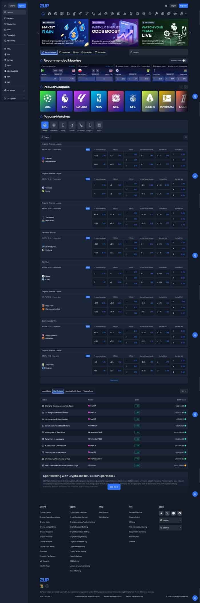 If you enjoy betting on the most popular sports and leagues, and all that with the anonymity of crypto payments, 2UP could be a good choice for you. You won’t find a Bet Builder or many exciting betting features here, so the sportsbook is not for everyone.