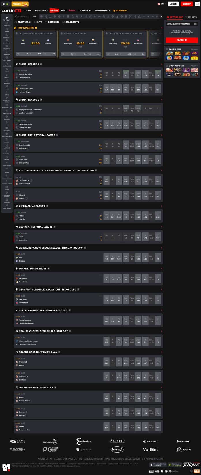 Banzai Bet is a sports betting site that’s primarily aimed at the Asian and Eastern European markets. It was launched in 2023 and offers a smooth, modern-looking sportsbook, but also a complete online casino experience.