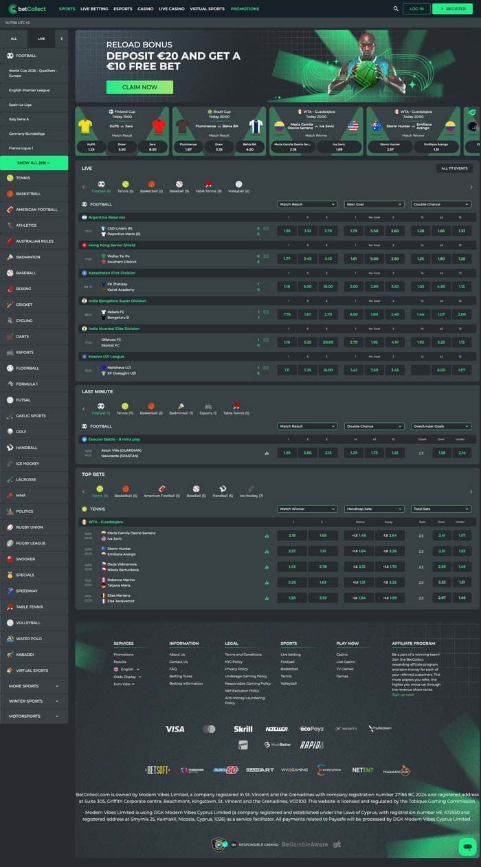 BetCollect is a new online sports betting site that launched in 2025. The site is owned and operated by Modern Vibes Limited.