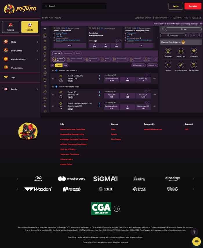 Beturo is a new sports betting site and online casino that has been active since 2025. The site is owned and operated by Geeker Technology N.V.