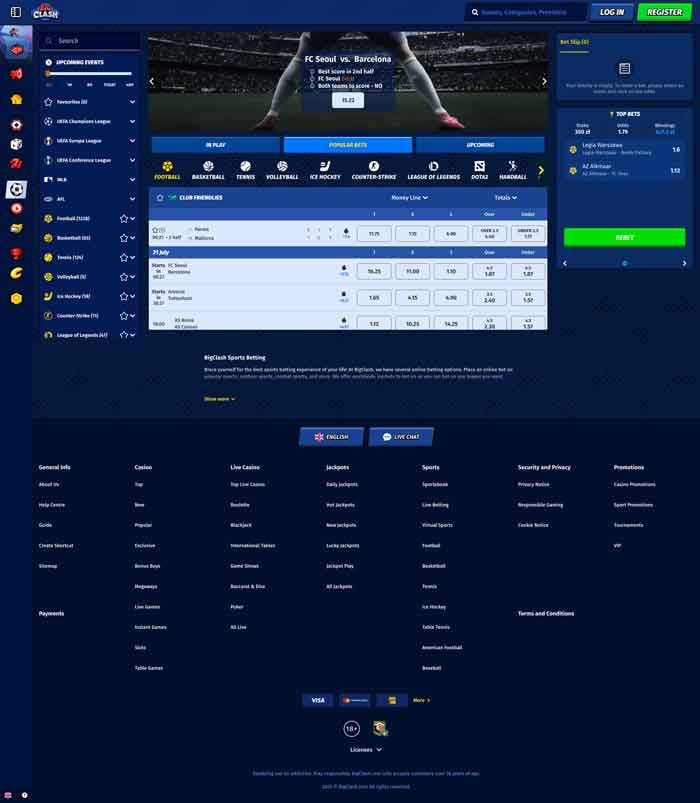Get ready to fight! Fight for the best odds on sport, of course. A combat-themed betting site, BigClash is a very striking (ha!) sportsbook that, even though still pretty new in the business, offers a complete betting experience to punters of all profiles. Read more about it in our in-depth BigClash review!