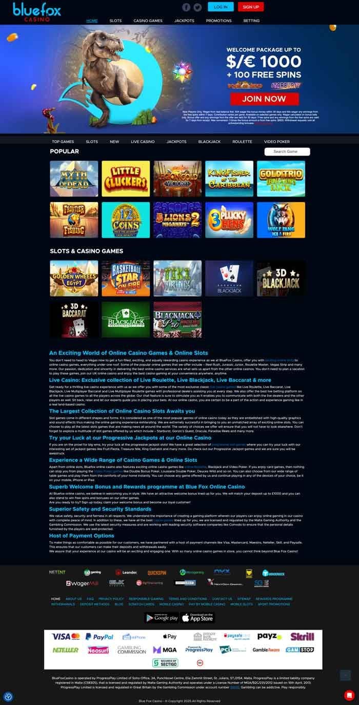 Established in 2018, Bluefox has been around for a while now, welcoming both sports betting and online casino customers. It is owned by ProgressPlay Limited, a company licensed by the UK Gaming Commission and Malta Gaming Authority.