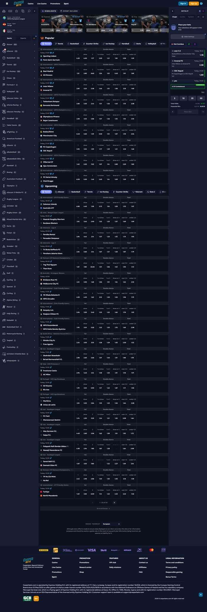 There are more than 40 sports available at Casper Bets, including specials (politics, Eurovision, award shows) and niche sports such as teqball, kabaddi, and sumo.