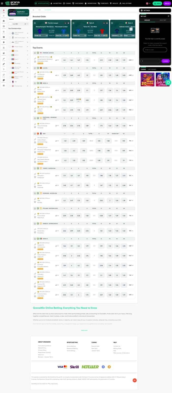 GranaWin is a relatively new sports betting site that launched in 2024. The site is owned and operated by Starsten Limited. It operates as a fiat-crypto hybrid site and also has a dedicated online casino section.