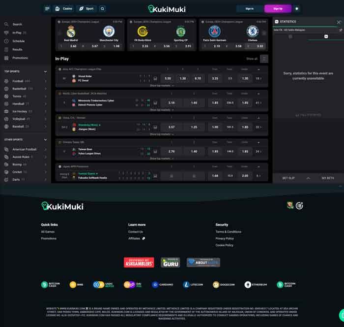 KukiMuki is a new sports betting site that was launched in 2025. It is owned and operated by Metaface Limited and operates as both an online sportsbook and a casino.