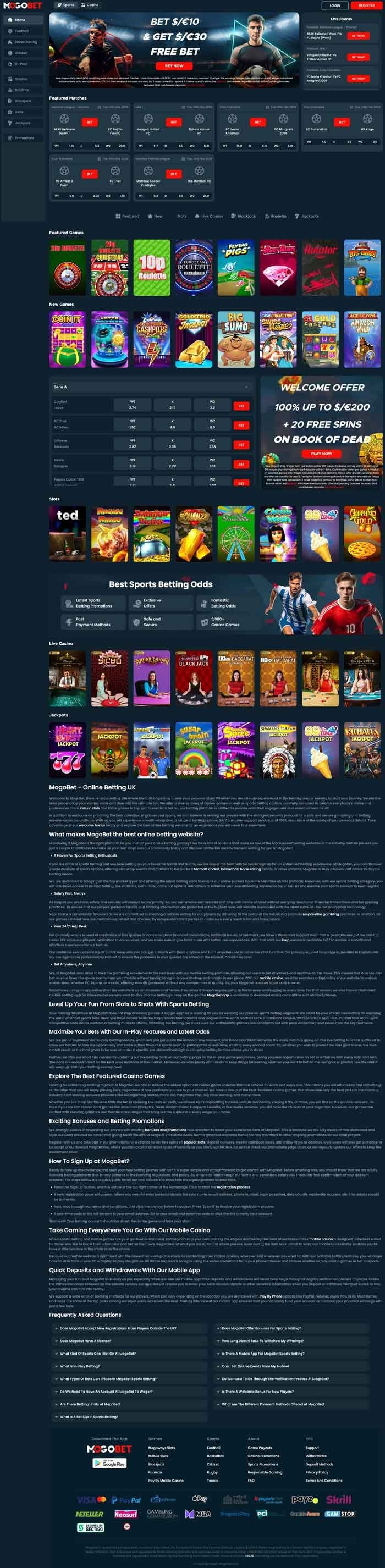 MogoBet is a popular UK online sportsbook that launched in 2017. ProgressPlay Limited owns and operates the site, and it holds licenses from the United Kingdom Gambling Commission and the Malta Gaming Authority.