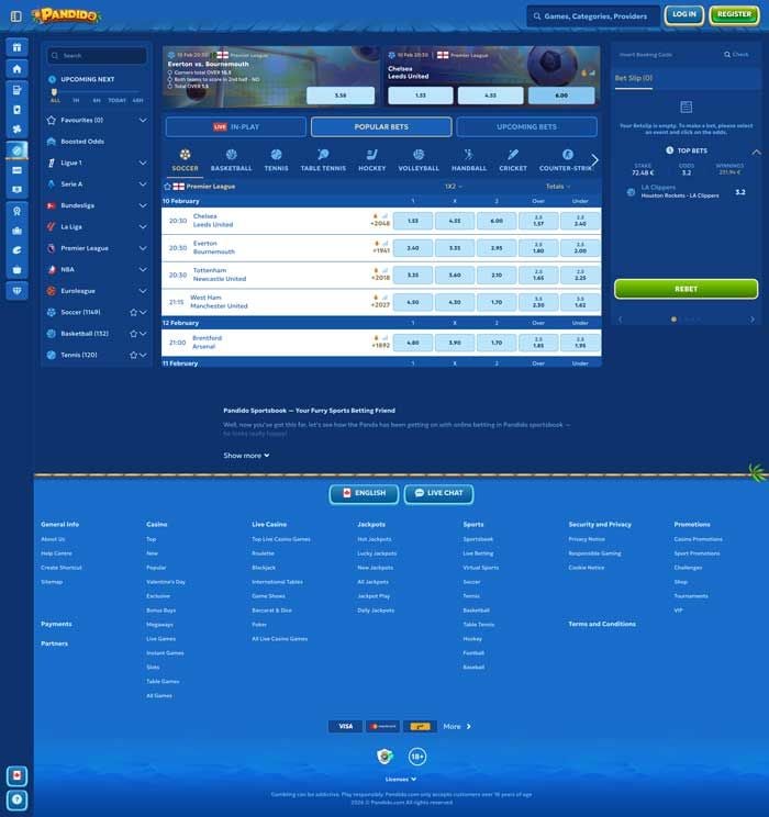 Pandido’s bonus offering beyond welcome bonuses is pretty good, too. You can score weekly reload bonuses, acca and odd boosts, risk-free bonuses when using Bet Builder, and even lucrative cashbacks.