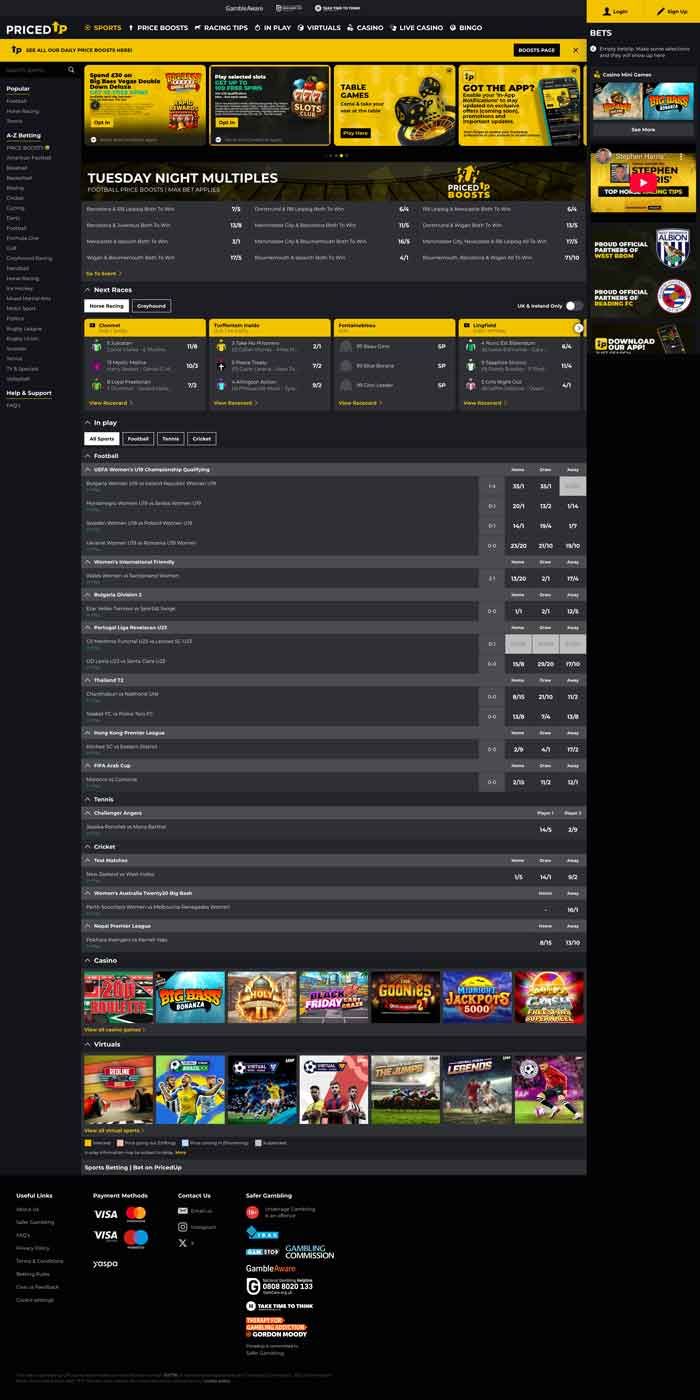Horse racing is also extremely popular at PricedUp, with the site offering competitive odds and price boosts on top meets from the UK, Ireland, and other leading countries daily.