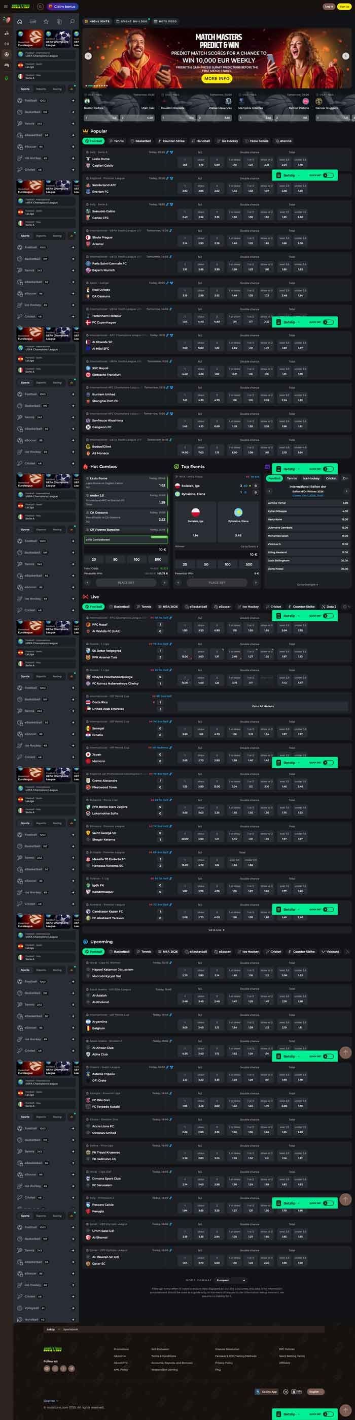 Roulettino is among the new sports betting sites. Launched in 2025, this site offers both a casino and a betting experience within one platform. It uses a familiar sportsbook format, but also supports lots of languages, catering to the international crowd.