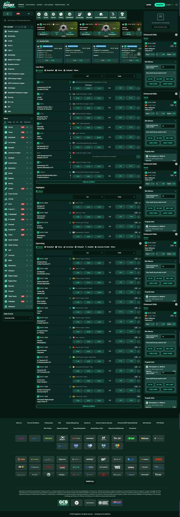 - In-play betting: As you would expect from a new sports betting site, SagaSpins offers a good in-play betting section. Here, you will find excellent up-to-the-second odds, as well as a wide range of markets.