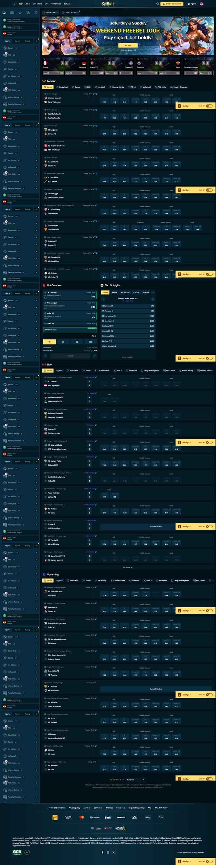 Football takes the top spot among sports bettors at SpellWin. During this SpellWin review, there were over 1,000 live markets available for the sport, with all of the major leagues and divisions, including the Premier League and Champions League, receiving ample coverage.