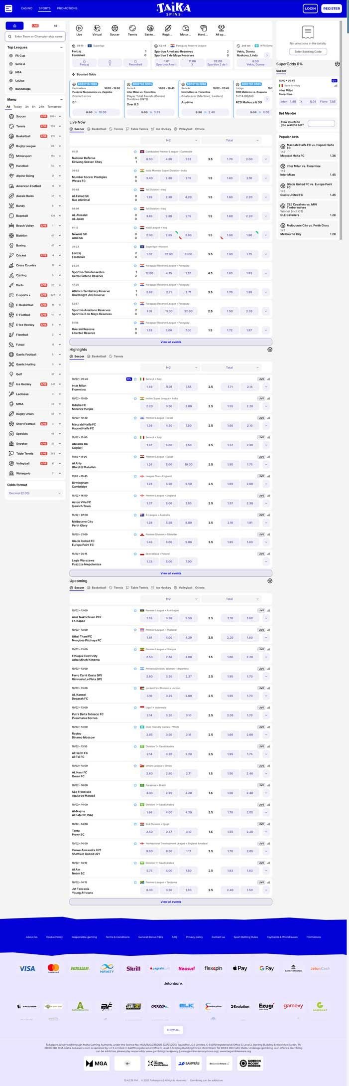 Taikaspins is a sportsbook that merits your attention for its good selection of welcome and other bonus offers. It features all the most popular sports and markets to bet on, alongside a good choice of payment options.