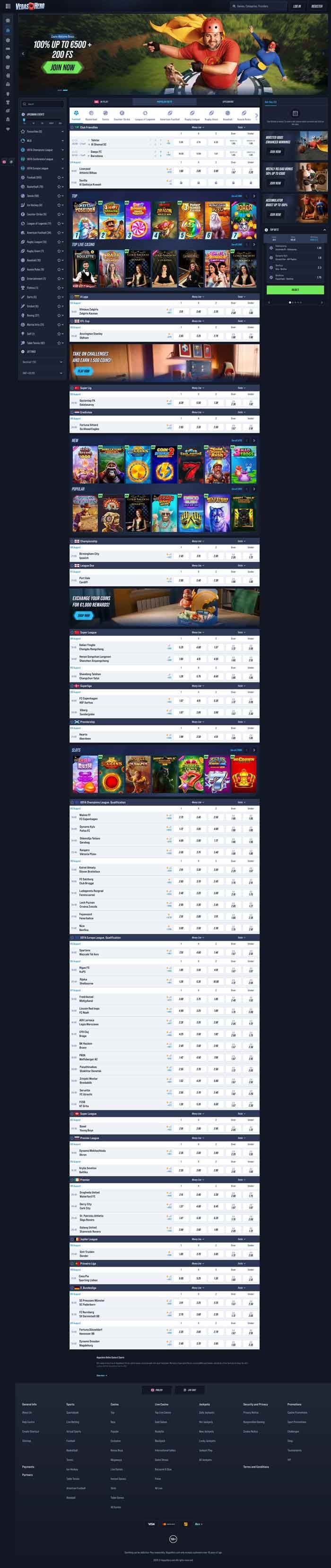 With VegasHero offering its services to international customers across continents, it’s no wonder that football is the most popular sport the operator offers. You can find the most popular competitions at the top of the sports list, and most of them are football.
